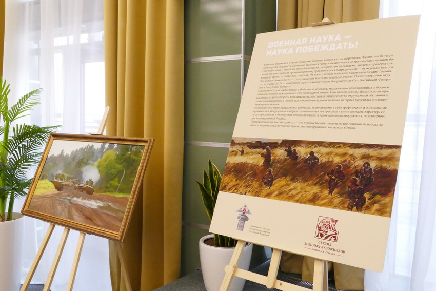 В первый же день работы для участников конференции была организована выставка картин художников студии Грекова. Представлена выставка раритетной литературы 19 века по психологической подготовке войск.