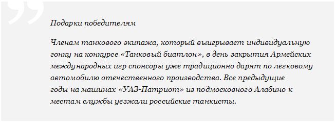 - А что-то на память о пережитых эмоциях на увлекательнейшем соревновании грозных боевых машин можно будет в Алабино купить или получить бесплатно?