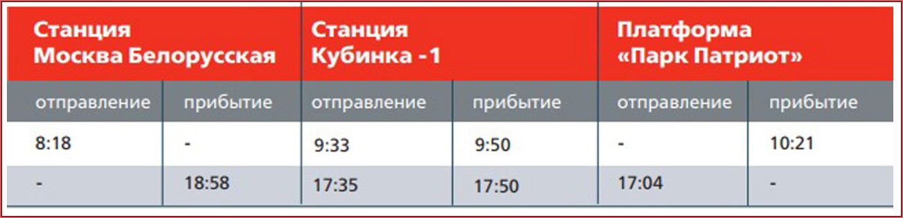 В рамках Международного военно-технического форума «АРМИЯ-2020» и Армейских международных игр с 23 августа по 5 сентября поезда «Ласточка» будут курсировать между Москвой и Конгрессно-выставочным центром «Патриот». Поезда «Ласточка» будут курсировать в комплектации «Премиум».