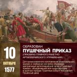 10 октября 1577 года для организованного изготовления огнестрельного оружия и снабжения им войск создан «Пушечный приказ»