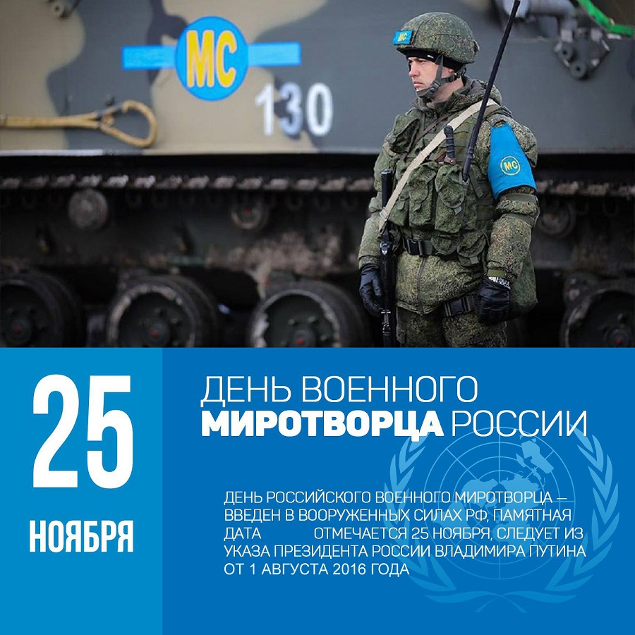 В России 25 ноября отмечают День военного миротворца — профессиональный праздник военнослужащих миротворческих сил, участвующих в урегулировании региональных конфликтов и гуманитарных миссиях.