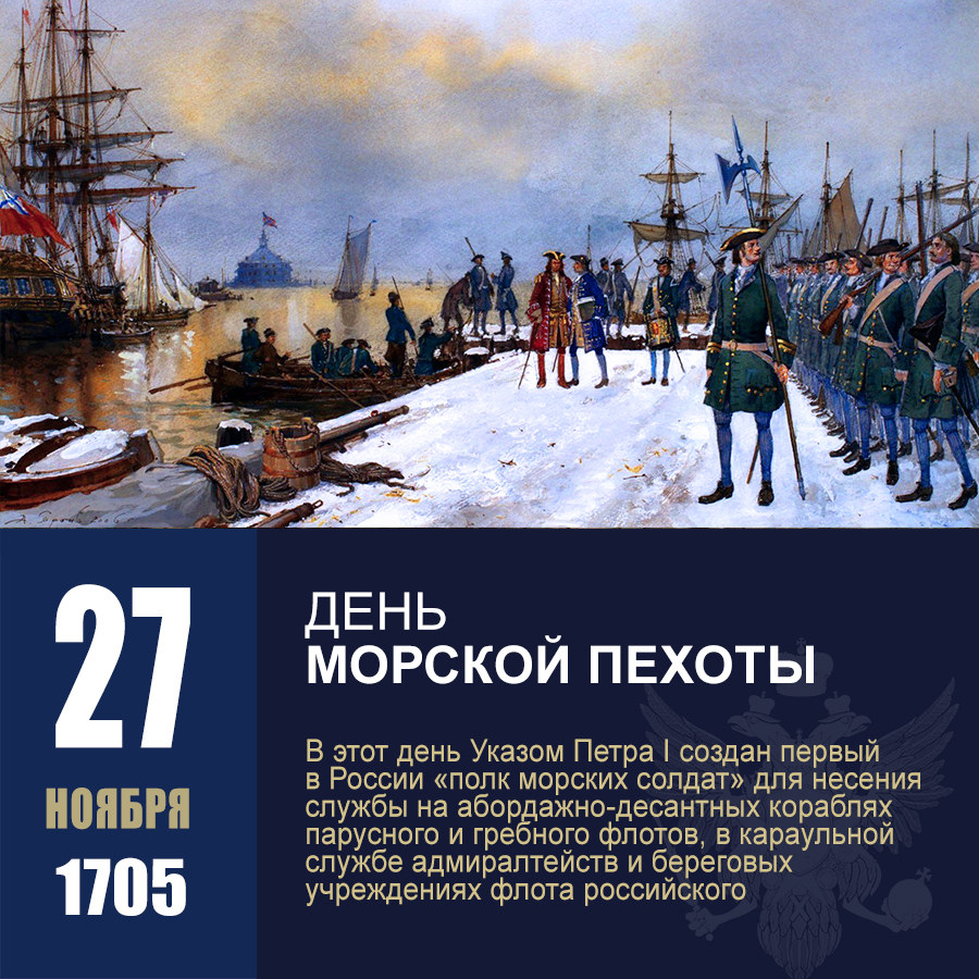 Сегодня, 27 ноября, в Вооруженных Силах Российской Федерации отмечается 320-я годовщина со дня основания морской пехоты.