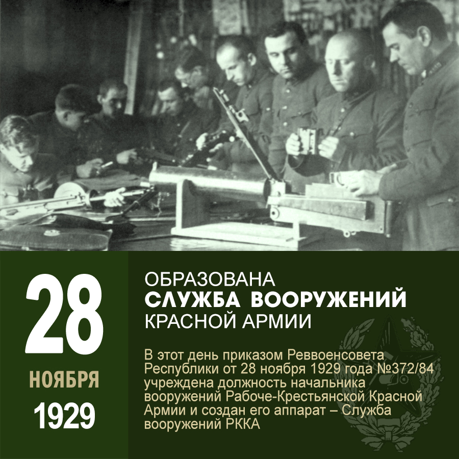 Для успешного решения задач технического перевооружения Красной Армии в 1929 году учреждается должность начальника вооружений РККА, подчиняющегося непосредственно народному комиссару по военным и морским делам, и формируется Служба вооружений РККА в составе Технического штаба начальника вооружений РККА, отделов изобретений и стандартизации.