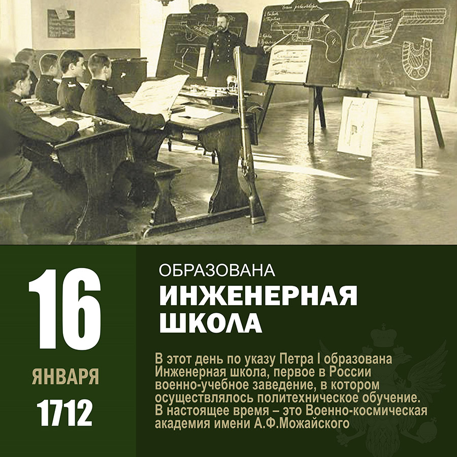 Ее история ведется от Инженерной школы, которую создал еще царь Петр I в 1712 году. Это первое в России военно-учебное заведение, где осуществлялось политехническое обучение.
