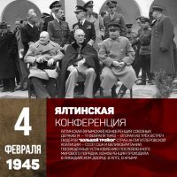 4 февраля открылась Ялтинская конференция глав правительств СССР, США и Великобритании. Рузвельт, Черчилль и Сталин обсуждали вопрос о безоговорочной капитуляции Германии и её последующий раздел на четыре зоны оккупации.