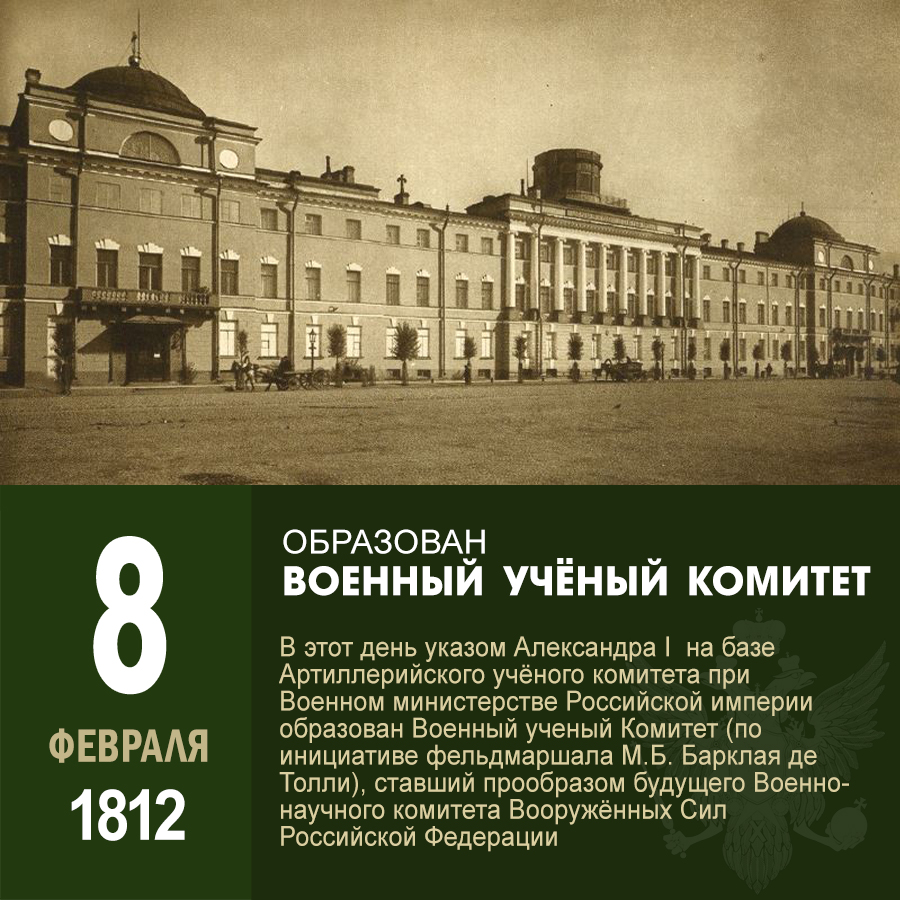 С этой даты начинается 214-летняя история центральных военно-научных органов Вооруженных Сил России, в которой выделяются имперский (1812-1917 гг), советский (1918-1991 гг) и современный (с 1992 года) периоды.